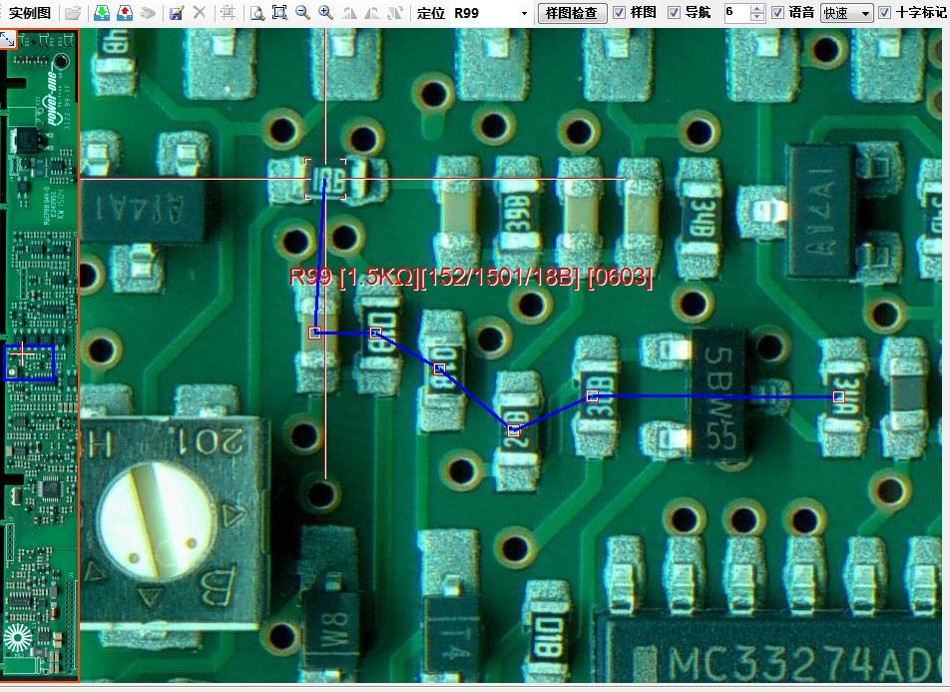 3.測試時路線導航準確,有語音提示,查找元件方便,且同步顯示元件封裝及標準值,防止錯貼。