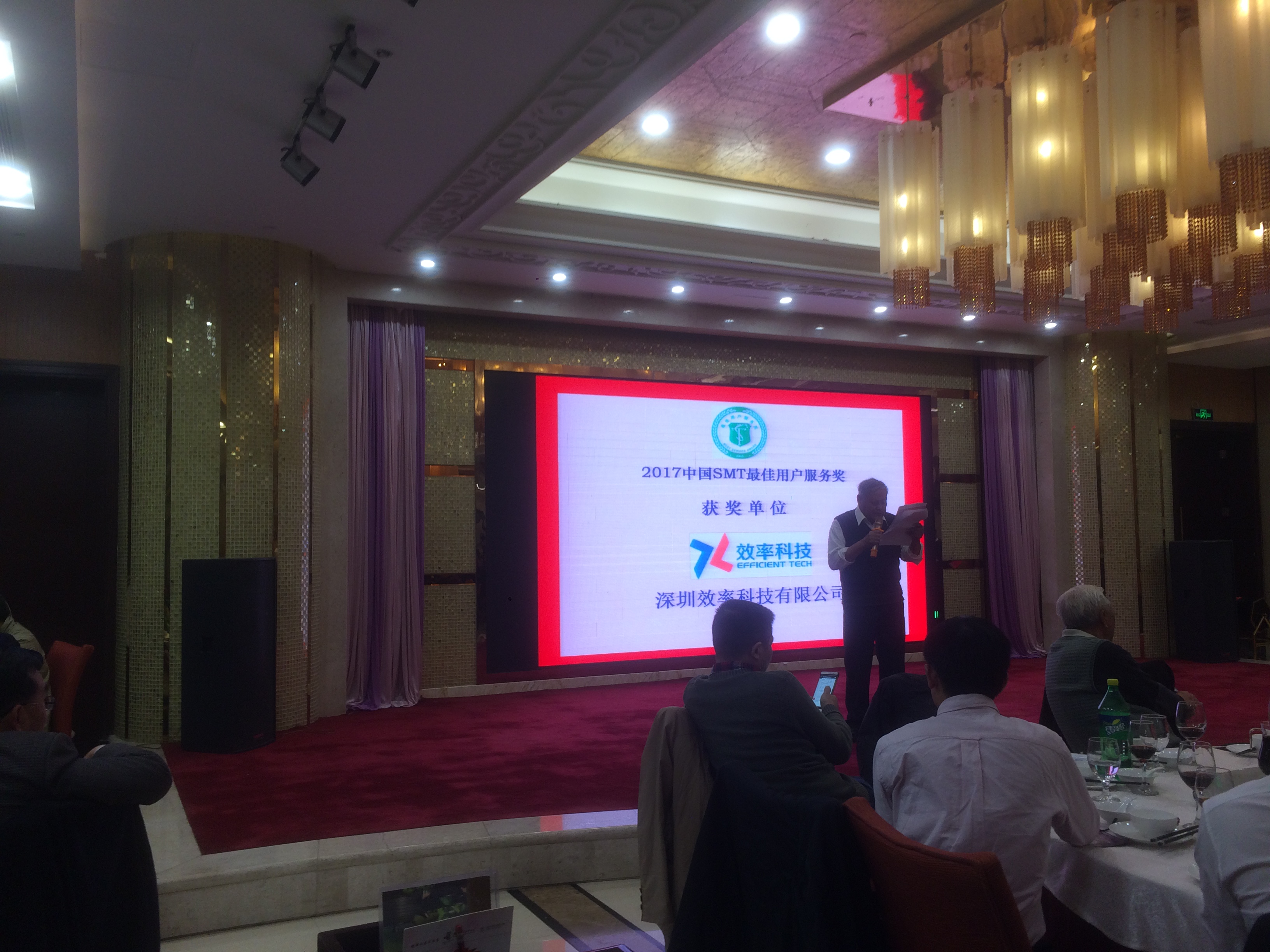 2017中國·華南SMT學(xué)術(shù)與應(yīng)用技術(shù)年會(huì)暨2017中國SMT創(chuàng)新成果獎(jiǎng)?lì)C獎(jiǎng)典禮于2017年12月19日在維納斯皇家酒店舉辦,會(huì)議由廣東省電子學(xué)會(huì)SMT專委會(huì)舉辦。華南學(xué)術(shù)與應(yīng)用技術(shù)年會(huì)已連續(xù)舉辦12屆,受到了華南地區(qū)客戶的一致好評(píng),本屆年會(huì)吸引了眾多SMT業(yè)界人士蒞臨,我司作為本次2017最佳用戶服務(wù)獎(jiǎng)獲得者,由業(yè)務(wù)部負(fù)責(zé)人出席本次活動(dòng),并上臺(tái)領(lǐng)獎(jiǎng)。