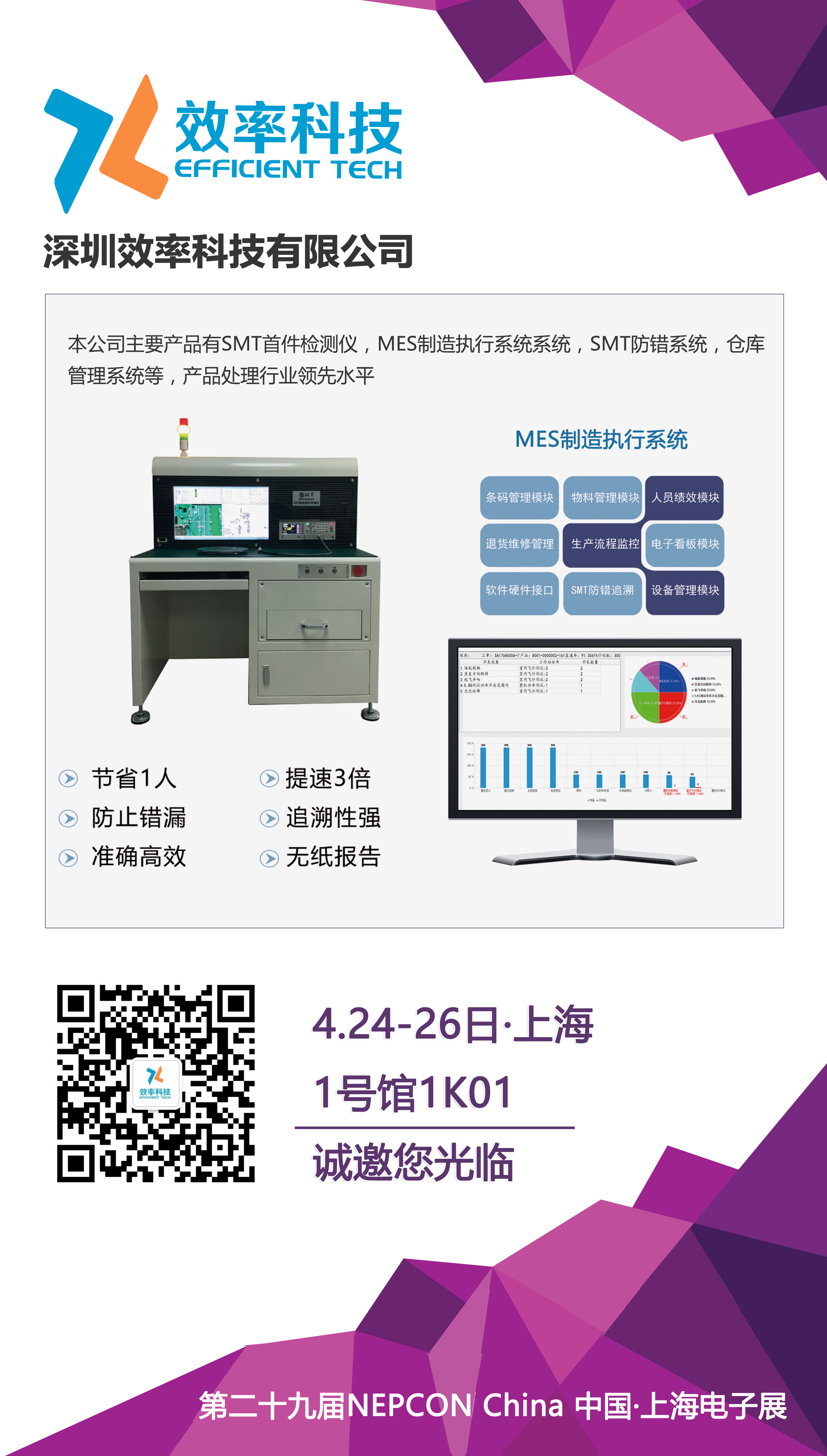 2019年4月24日-26日,效率科技將攜新的技術產(chǎn)品亮相2019上海NEPCON展會。