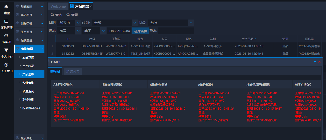6、追溯管理:可以對生產過程中的產品進行追溯管理,包括原材料來源、生產過程記錄、產品批次信息等,便于在產品質量問題發生時進行追溯和排查。
