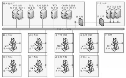 MES構(gòu)架如圖1所示,整體網(wǎng)絡(luò)拓?fù)淙鐖D2所示。系統(tǒng)主要包括:
