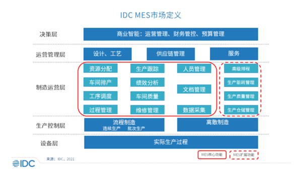 ??北京,2021年12月2日——“十四五”規劃綱要奠定了發展實體經濟的總體戰略,強調深入實施制造強國策略。中國制造業的數字化投資將持續增長,進入高質量發展階段,推動制造的高端化、智能化、綠色化。2021年11月30日,工信部印發《“十四五”軟件和信息技術服務業發展規劃》。規劃指出,軟件是新一代信息技術的靈魂,是數字經濟發展的基礎,是制造強國、網絡強國、數字中國建設的關鍵支撐。規劃提出的主要任務包括重點突破工業軟件。制造執行系統(MES)作為重要的工業軟件之一,是智能制造的引擎、數字工廠的核心,在技術及新興勢力的推動下,正煥發出新的活力,包括:云化服務化的交付方式、設計生產運營的一體化、集成排產及供應鏈的敏捷生產等。IDC分析表明,2020年中國MES軟件市場快速增長,達到24.3%的復合增長率。