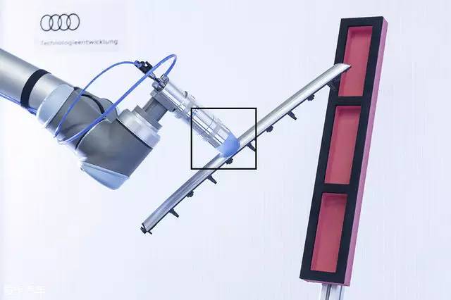 奧迪智能工廠發(fā)明的柔性抓取機(jī)器人不同于現(xiàn)階段的抓取機(jī)器人,該機(jī)器人特點(diǎn)在于柔性觸手,這種結(jié)構(gòu)類似于變色龍舌頭,抓取零件更加靈活。