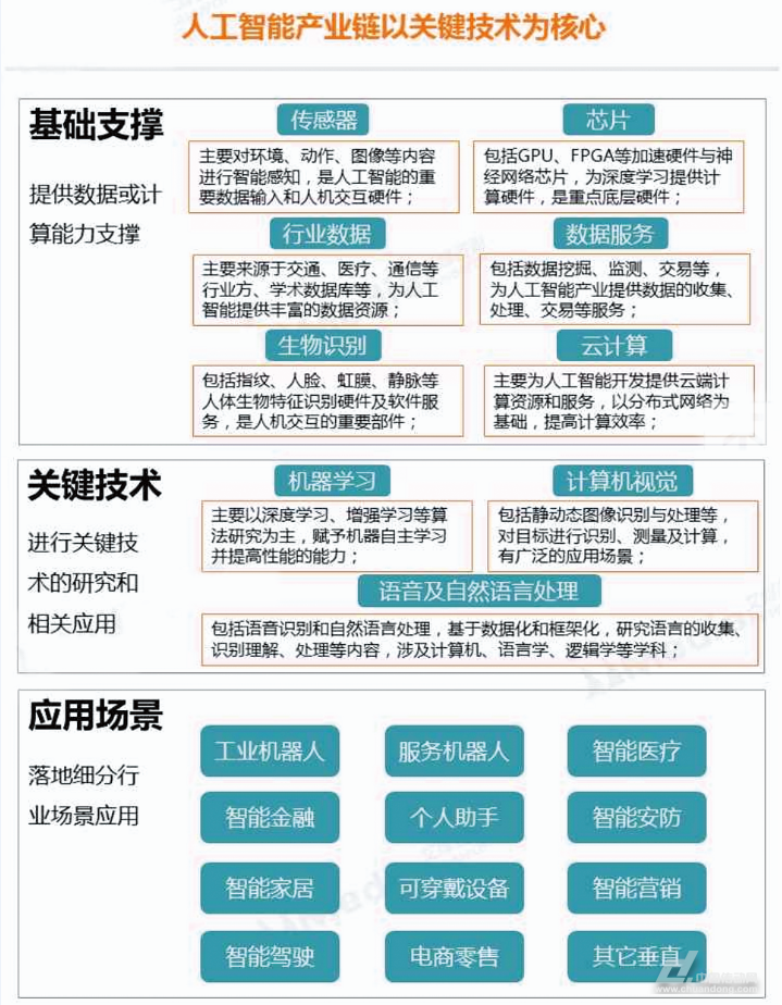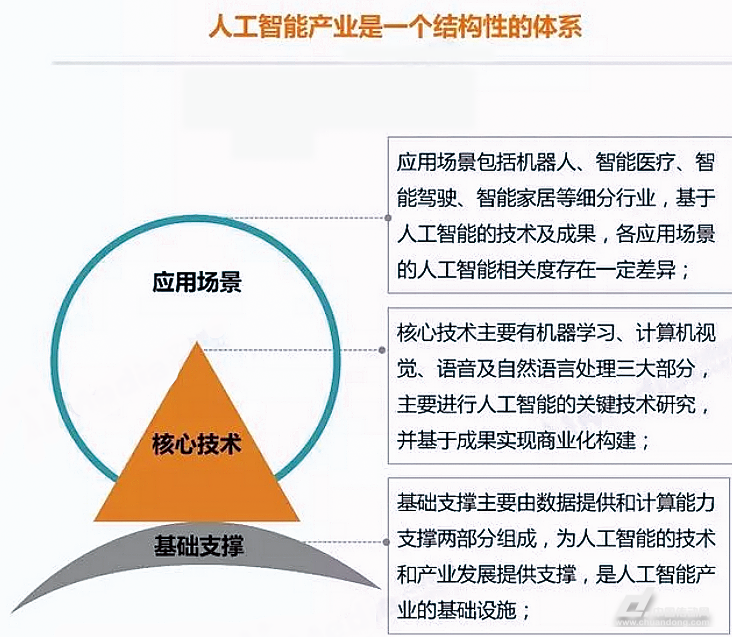 人工智能產業是指以人工智能關鍵技術為核心的,由基礎支撐和應用場景組成的,一個覆蓋領域非常廣闊的產業,與人工智能的學術定義不同,人工智能產業更多的是經濟和產業上一種概括。