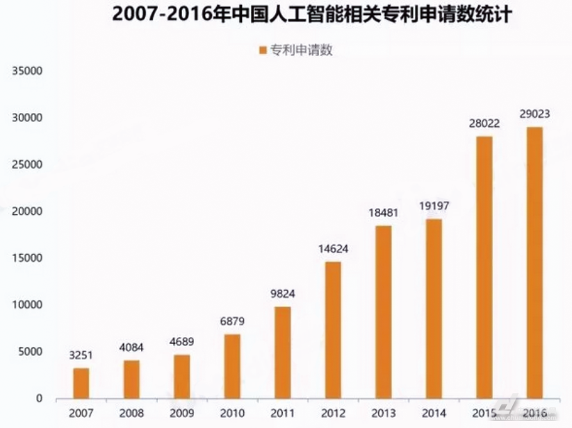 艾媒咨詢分析師認為,中國人工智能產業起步相對較晚,但產業布局、技術研究等基礎設施正處于進步期,隨著科技、制造等業界巨頭公司的布局深入,人工智能產業的規模將進一步擴大。而隨著眾多垂直領域的創業公司的誕生和成長,人工智能將出現更多的產業級和消費級應用產品。根據統計數據,中國人工智能相關專利申請數從2010年開始出現持續增長,于2014年達到19197項,并于2015年開始大幅增長,達到28022項,2016年,中國人工智能相關專利年申請數為29023項,見圖3。